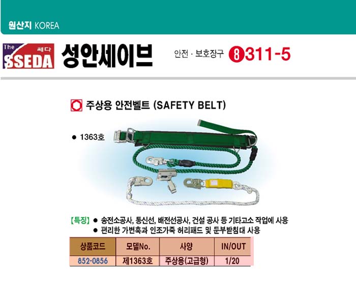[¼º¾È¼¼À̺ê/¼¼´Ù/SSEDA] ÁÖ»ó¿ë¾ÈÀüº§Æ®(Á¦1363È£, KT¿ë °í±ÞÇü)(SAFETY BELT):´ÜÁ¾!!