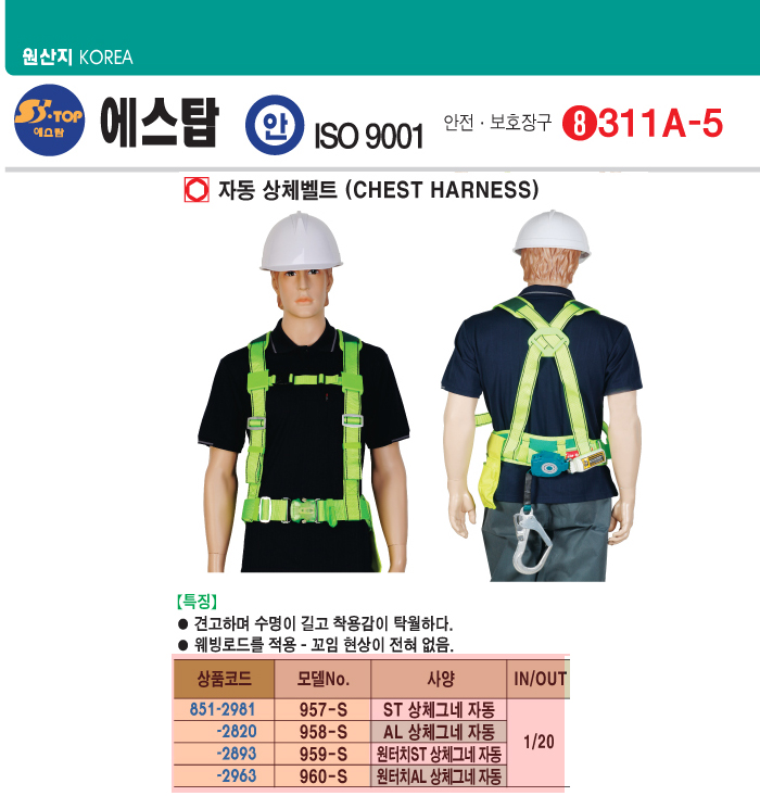 [¿¡½ºÅ¾] ÀÚµ¿»óüº§Æ®(Á¦958-SÈ£, AL´ë±¸°æ »óü±×³×ÀÚµ¿)(CHEST HARNESS)