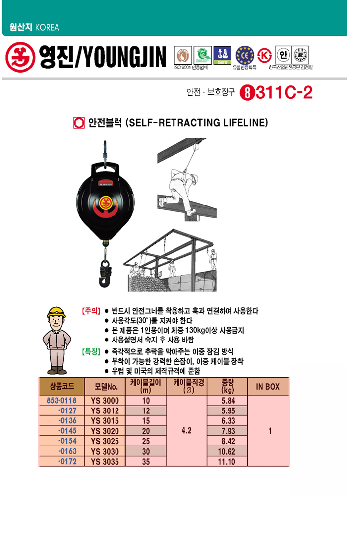 [¿µÁø] ¾ÈÀüºí·°(YS-3020, 20¹ÌÅÍ)(SELF RETRACTING LIFELINE):4/12 ÇöÀç ÀϽÃǰÀý!!