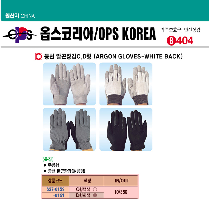 [¿É½º] µîõ ¾Ë°ïÀå°©(CÇü ¹é»ö)(ARGON GLOVES -WHITE BACK)(10¼¼Æ® ¹­À½ ÆÇ¸Å)