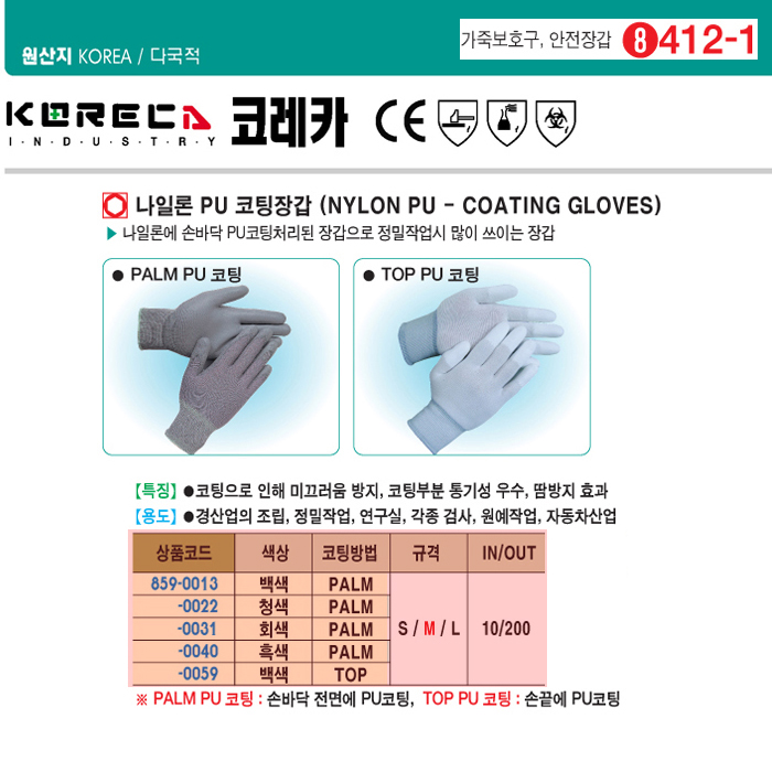 [ÄÚ·¹Ä«] ³ªÀÏ·Ð PUÄÚÆÃÀå°©(Èæ»ö, PALM)(NYLON PU COATING GLOVES)(10¼¼Æ® ¹­À½)