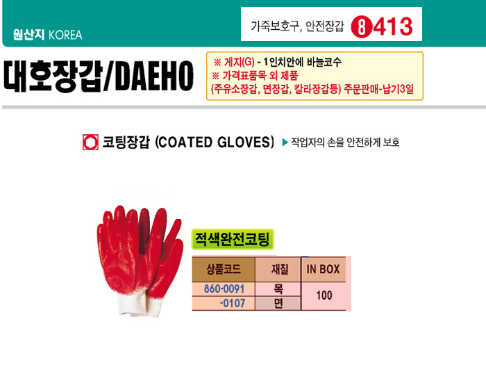 [´ëÈ£] Àû»ö¿ÏÀüÄÚÆÃÀå°©(¸ñ)(COATED GLOVES)(100¼¼Æ® ¹­À½)(ÁÖ¹®Àü Àç°íÀ¯¹« È®ÀÎ)