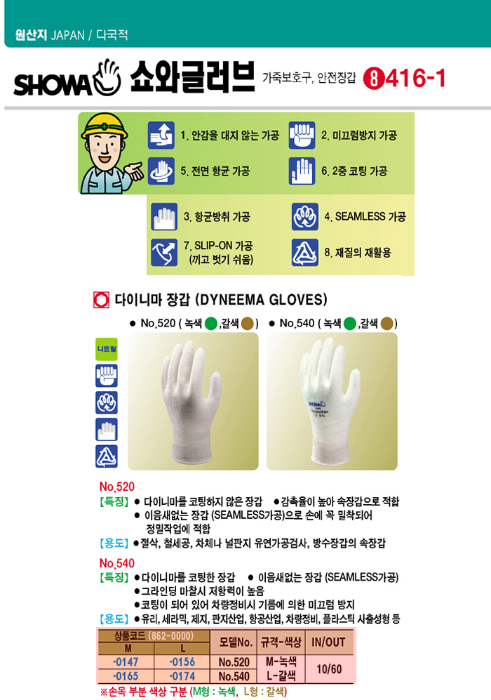 [¼î¿Í±Û·¯ºê] ´ÙÀ̴ϸ¶ Àå°©(No.540)(DYNEEMA GLOVES)(10¼¼Æ® ¹­À½ ÆÇ¸Å):ÀϽÃǰÀý!!