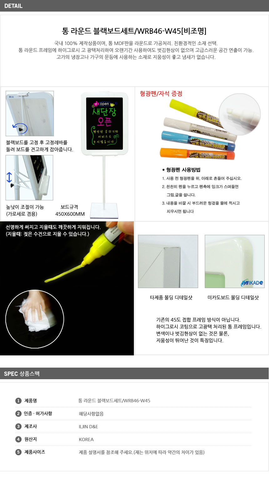 [ÀÏÁø] Åë ¶ó¿îµå ºí·¢º¸µå¼¼Æ®(WRB46-W45, ºñÁ¶¸í, 450x600mm, ½Ä´ç/Ä¿ÇǼó/À½½ÄÁ¡ ¸Þ´ºÆÇ, À̺¥Æ® ¼Ò°³ °Ô½ÃÆÇ ÀÔ°£ÆÇ)