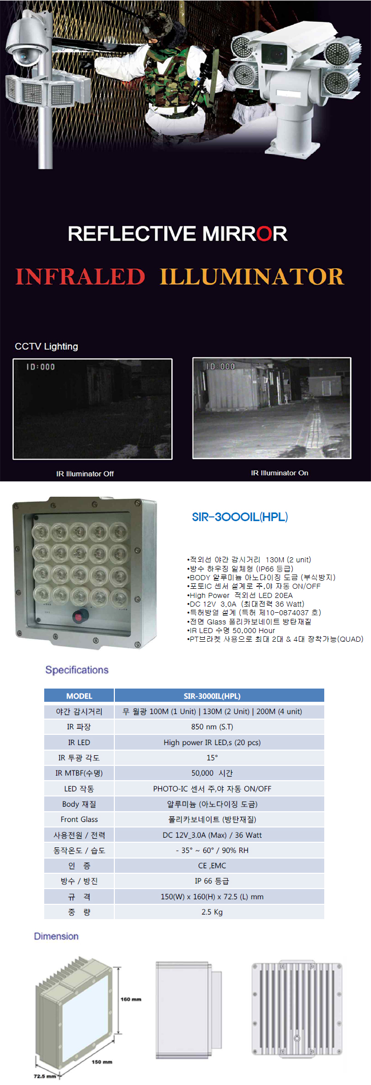 • ¹Ý»ç°æ (Reflective Mirror) ³»Àå Àû¿Ü¼± LED 60EA / 1´ë ±âÁØ