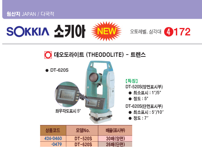 [¼ÒŰ¾Æ] µ¥¿Àµµ¶óÀÌÆ®(DT-620S, Æ®·»½º, 26¹è/´Ü¸é)(THEODOLITE)()(Àç°í»óÅ ȮÀοä¸Á)