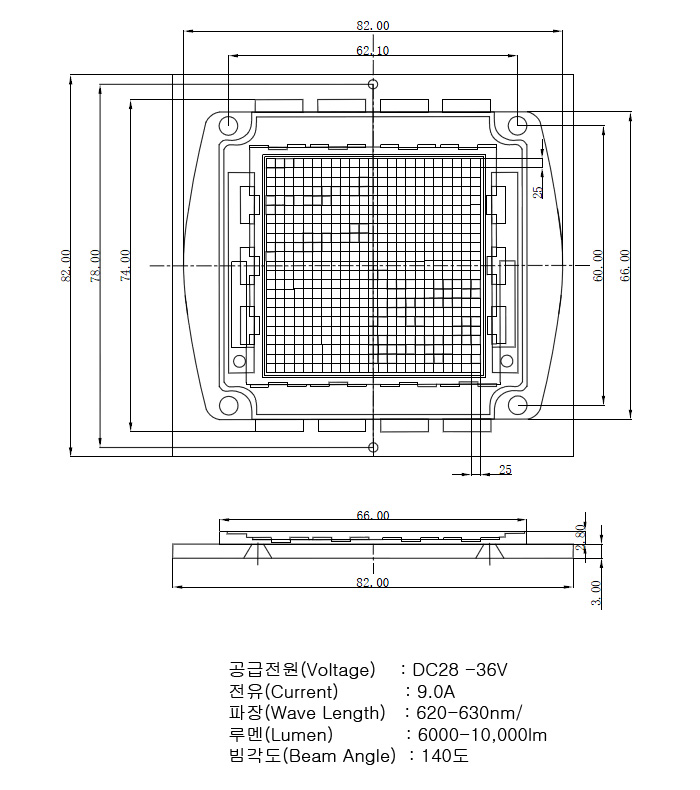 [WT] 300Watt ´ëÇü Àû»ö LEDĨ DC28-36V/9.0A/620-630nm/6000-10000lm(300Watt Red LED chips Ư¼öÁ¶¸í¿ë)