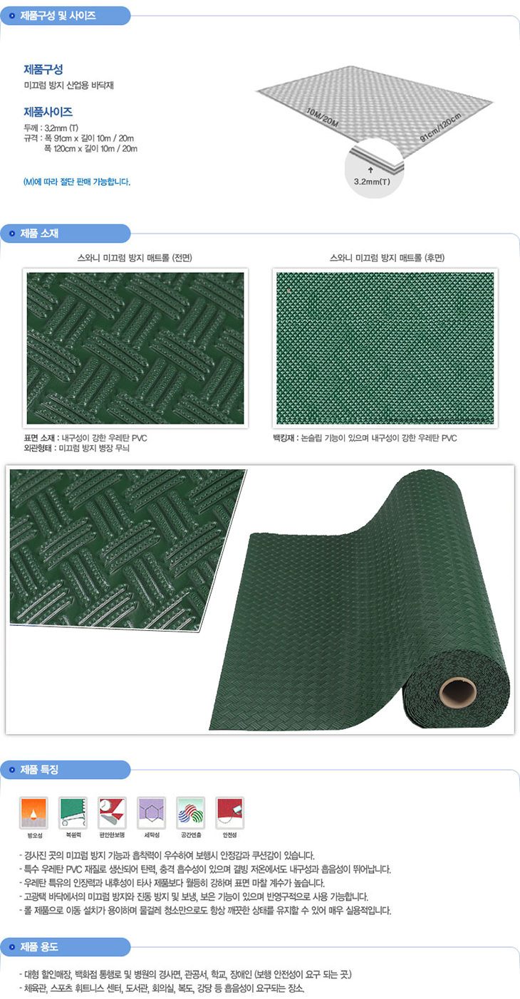 [SW] ¹Ì²ô·³¹æÁö ¸ÅÆ®·Ñ/¹Ì²ô·³¹æÁö »ê¾÷¿ë ¹Ù´ÚÀç(RSW-9052, 3.2t, ³ì»ö)