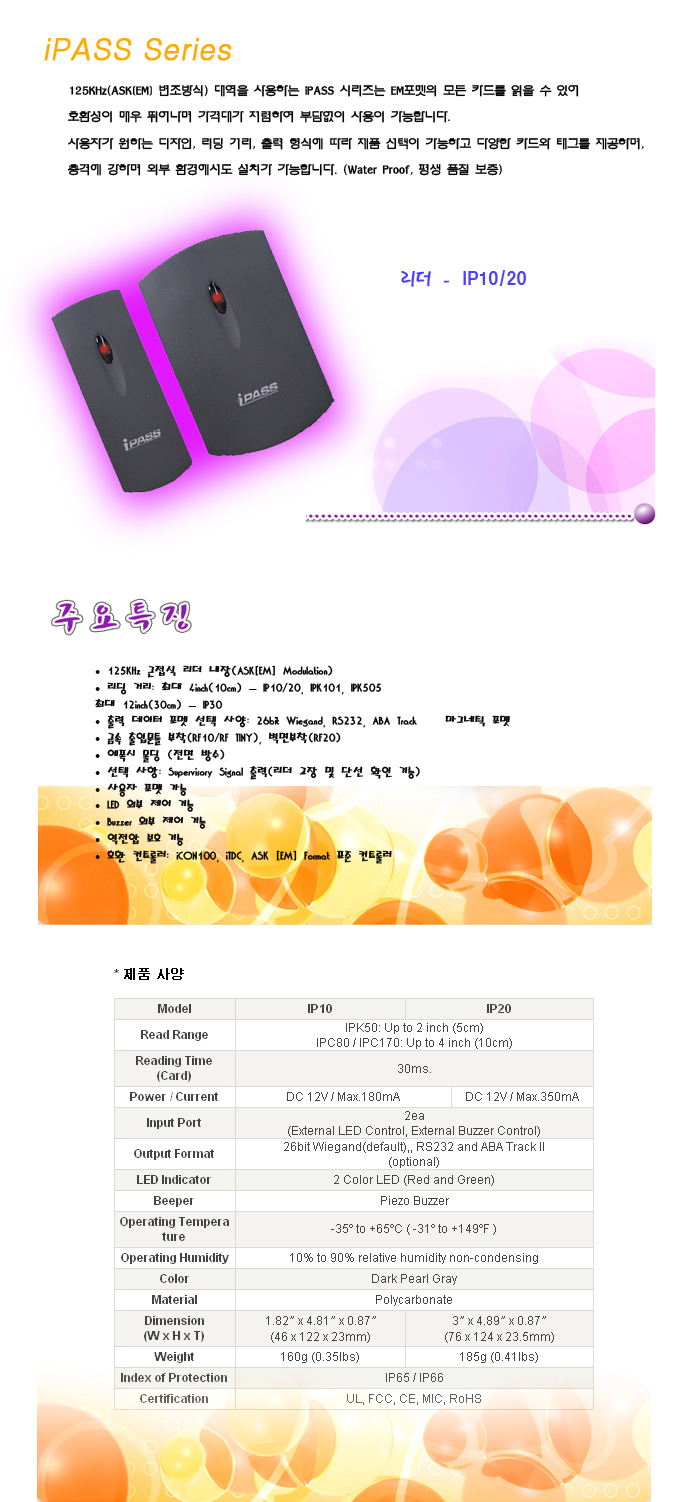 [ID] IP-20(EM 125KHz)(±ÙÁ¢½Ä¸®´õ±â)(Proximity Card Reader)