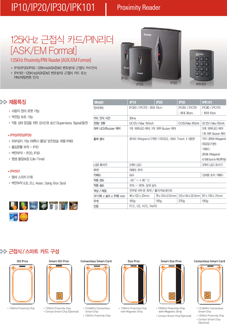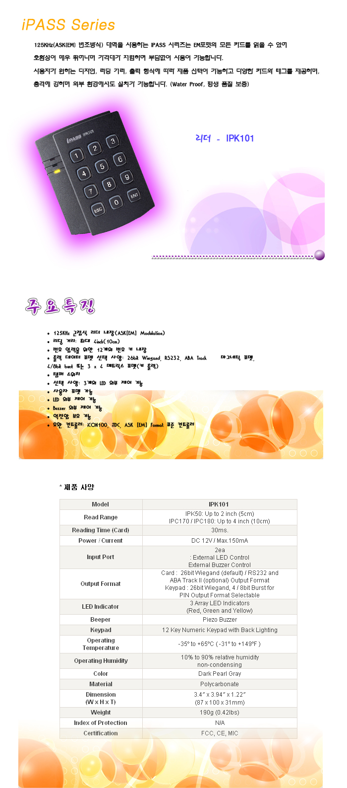 [ID] IP-K101(EM 125KHz)(±ÙÁ¢½Ä RF Ä«µå ¸®´õ)(PIN & Proximity Card Reader)
