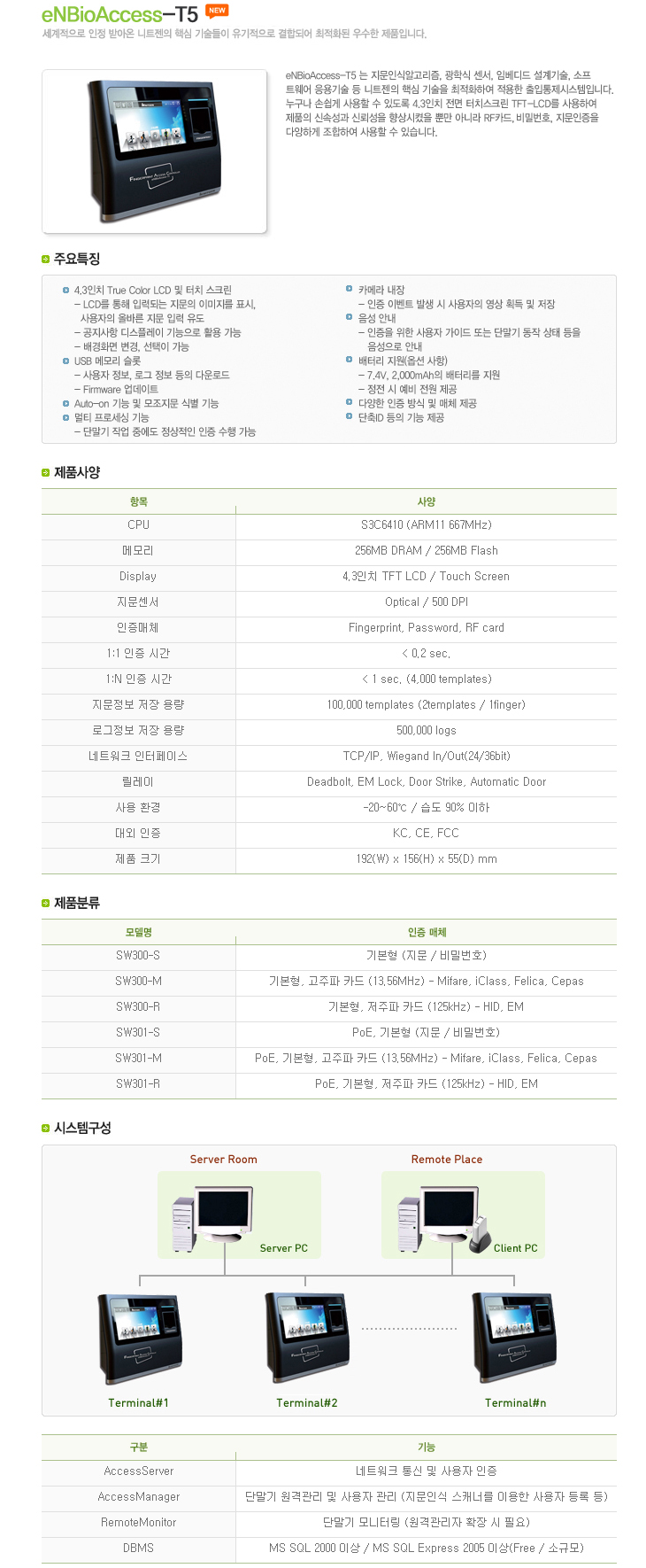 [´ÏÆ®Á¨] eNBioAccess-T5(Standard Type with Ä«¸Þ¶ó, ÃâÀÔÅëÁ¦´Ü¸»±â, Áö¹®Àνıâ + RF½Ã½ºÅÛ ¼±Åð¡´É)