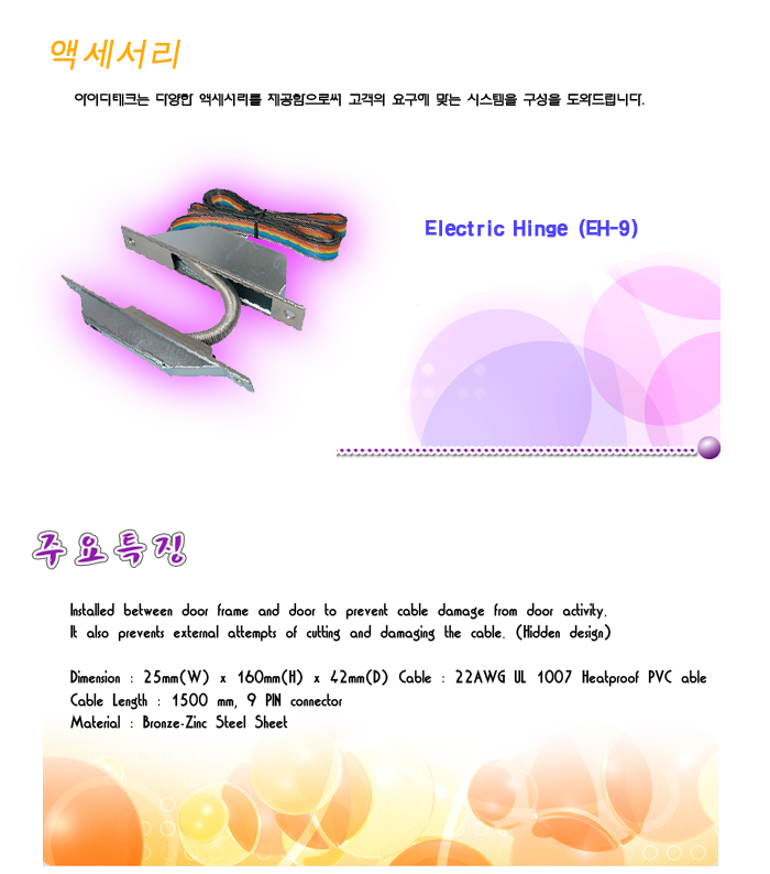 * Ç¥½Ã±Ý¾×Àº ±ÇÀå ¼ÒºñÀÚ °¡°ÝÀ¸·Î 2°³ÀÌ»óÀÇ °æ¿ì °ßÀûÀ» ¿äûÇϽøé ÃÖÀûÀÇ °ßÀû±Ý¾×À» Á¦½ÃÇÕ´Ï´Ù. * ¼¿ï/ºÎ»ê/Æ÷Ç×/°æ³²(â¿ø, ¸¶»ê, ÁøÇØ, ÁøÁÖ)/Àü³²(¼øÃµ, ±¤¾ç) Áö¿ªÀº ¼³Ä¡¸¦ Áö¿øÇÕ´Ï´Ù. • ¸Å¸³Çü ÅëÀü°æÃ¸ (Electric Hinge) • ¹®ÀÇ °³ÆóÀÛ¿ë ¶Ç´Â ¿ÜºÎÀÇ Ä§ÀÔ ½Ãµµ¿¡ ÀÇÇØ ÄÉÀ̺íÀÌ ¼Õ»óµÇ´Â °ÍÀ» ¸·±â À§ÇØ ¹®Æ²°ú ¹® »çÀÌ¿¡ ¸Å¸³Çؼ ¼³Ä¡ÇÔ • ÄÉÀ̺í : 22AWG UL 1007 ³»¿¼º PVC ÄÉÀÌºí • ÄÉÀÌºí ±æÀÌ : 1,500mm(9ÇÉ Ä¿³ØÅÍ) • ÀçÁú : ½ºÅ×Àθ®½º ½ºÆ¿ • ±Ô°Ý : 25W x 160H x 42D(mm) |
