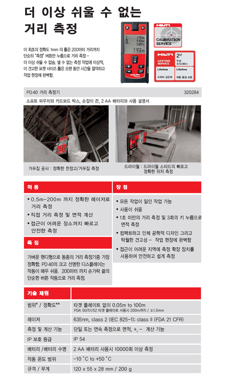 [HILTI] ·¹ÀÌÀú°Å¸®ÃøÁ¤±â(PD40)(±âº» 100¹ÌÅÍ, ŸÄÏ»ç¿ë 200¹ÌÅÍ)