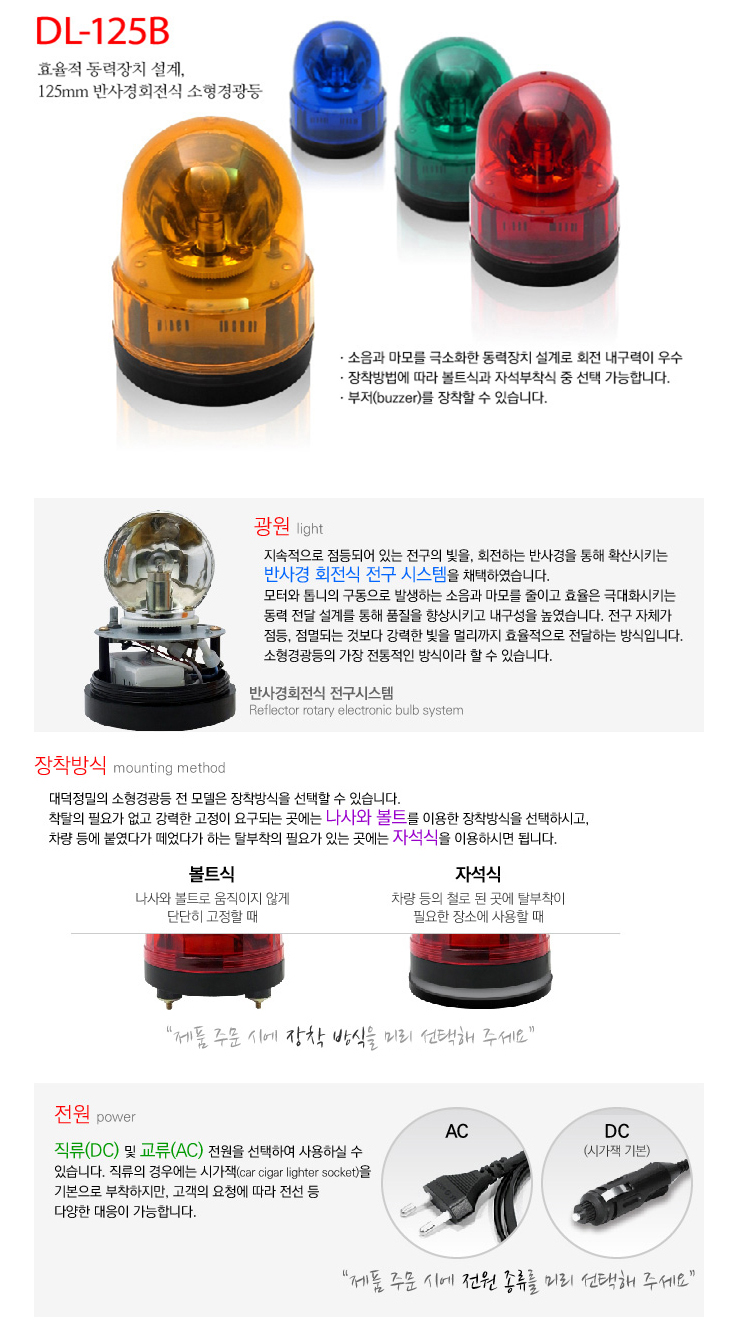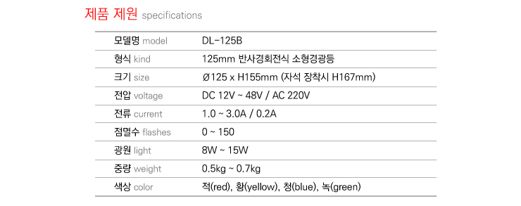 [´ë´ö] 125¨ª ¹Ý»ç°æÈ¸Àü½Ä ¼ÒÇü°æ±¤µî(DL-125B)(ÃâÂ÷ÁÖÀǵî/Àå³»°æº¸µî º¸¼ö¿ë °æ±¤µî)