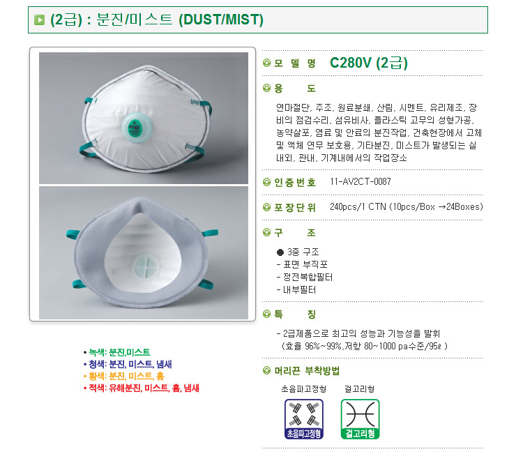[Å©¸°Å¾]2±Þ¹æÁø¸¶½ºÅ© ¿øÇü¹ÐÂøÆ÷/°É°í¸®Çü(C280VWB, ºÐÁø/¹Ì½ºÆ®)(10°³ 1¹Ú½º)(¿¬¸¶/Àý´Ü/ÁÖÁ¶/¿¬·áºÐ¼â/Á¤ºñÁ¡°Ë)(Dust respirator Mask)