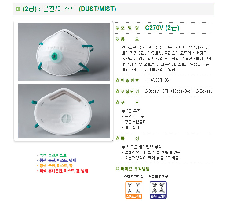 [Å©¸°Å¾]2±Þ¹æÁø¸¶½ºÅ© È¿À²/ÀúÇ×/»ç¿ë½Ã°£ Çâ»ó(C270VWS, ºÐÁø/¹Ì½ºÆ®)(10°³ 1¹Ú½º)(¿¬¸¶/Àý´Ü/ÁÖÁ¶/¿¬·áºÐ¼â/Á¤ºñÁ¡°Ë)(Dust respirator Mask)