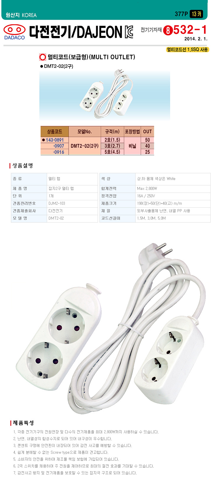 [´ÙÀüÀü±â]¸ÖƼÅÇ/¸ÖƼÄÚµå/¸ÖƼÄܼ¾Æ®(DMT-02, 2±¸)(Multi Outlet)