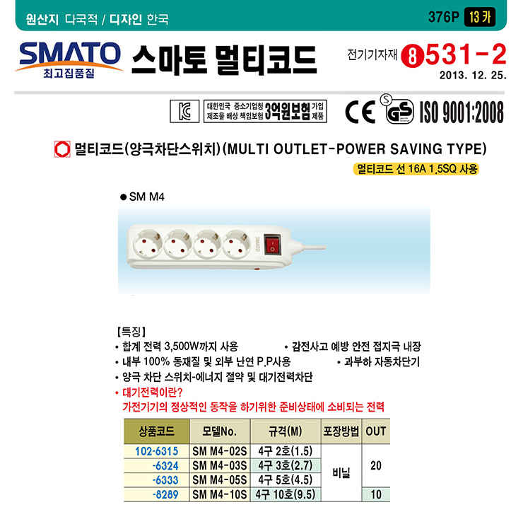 [½º¸¶Åä] ¸ÖƼÅÇ/¸ÖƼÄÚµå/¸ÖƼÄܼ¾Æ® ¾ç±ØÂ÷´Ü½ºÀ§Ä¡ 4±¸(Multi Outlet-Power Saving Type)