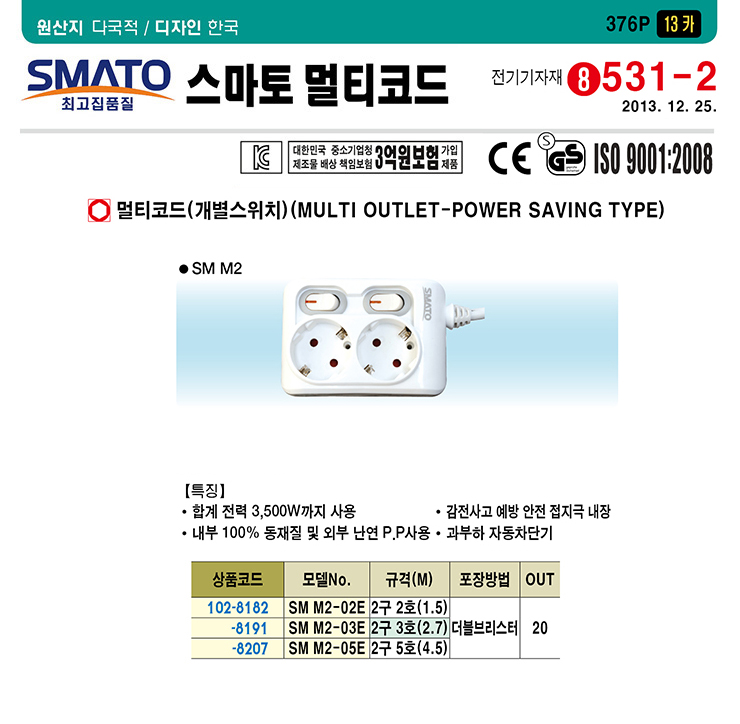[½º¸¶Åä] ¸ÖƼÅÇ/¸ÖƼÄÚµå/¸ÖƼÄܼ¾Æ® °³º°½ºÀ§Ä¡ 2±¸(Multi Outlet-Power Saving Type)