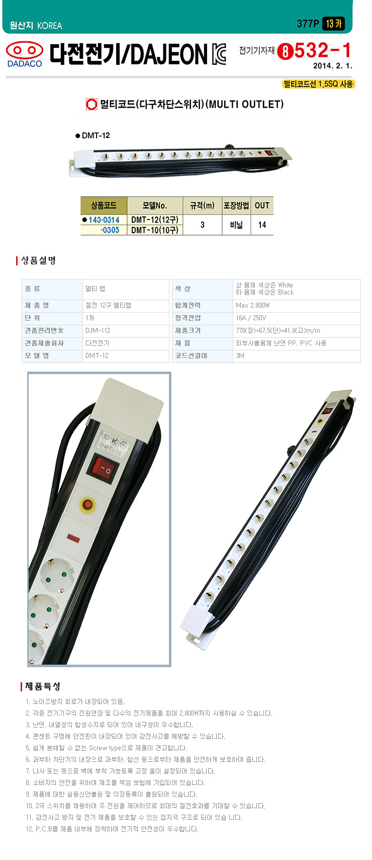 [´ÙÀüÀü±â]¸ÖƼÅÇ/¸ÖƼÄÚµå/¸ÖƼÄܼ¾Æ®(DMT-12,12±¸, 3M)(Multi Outlet)=>Á¦Ç°´ÜÁ¾!