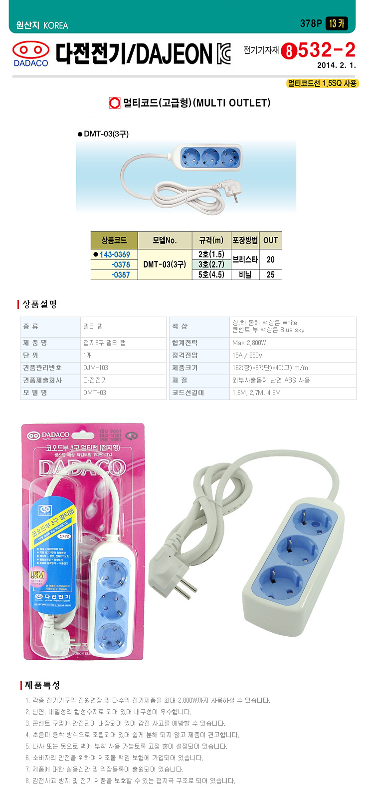 [´ÙÀüÀü±â]¸ÖƼÅÇ/¸ÖƼÄÚµå/¸ÖƼÄܼ¾Æ®(DMT-03, 3±¸)(Multi Outlet)-°í±ÞÇü