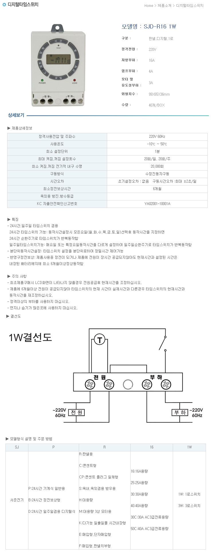 [¼­ÁØ]ÆÇ³Ú¿ë µðÁöÅРŸÀÓ½ºÀ§Ä¡(SJD-R16 1W, 1·Î½ºÀ§Ä¡)(Digital Time Switch)