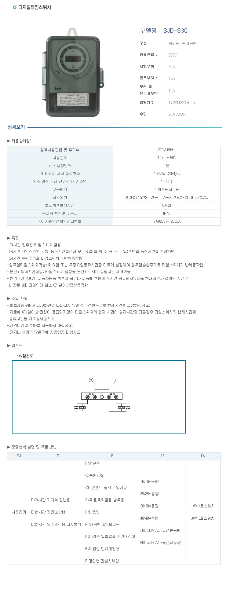 [¼­ÁØ]¿Á¿Ü¿ë Áß´ë¿ë·® µðÁöÅРŸÀÓ½ºÀ§Ä¡(SJD-S30, 2.2Kw¹Ì¸¸ºÎÇÏ, Á¤Àüº¸»ó/¹æ¿ìÇü)(Digital Time Switch)