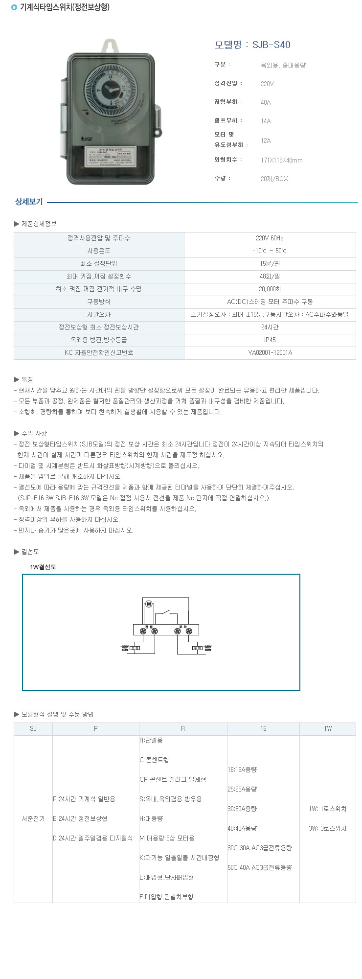 [¼­ÁØ]¿Á¿Ü¹æ¼ö¿ë Á¤Àüº¸»óÇü Áß´ëÇüºÎÇÏ µðÁöÅРŸÀÓ½ºÀ§Ä¡(SJB-S40, 3.1Kw¹Ì¸¸ºÎÇÏ, ¹æ¿ìÇü ±â°è½Ä ŸÀÓ½ºÀ§Ä¡)(Mechanical Time Switch)