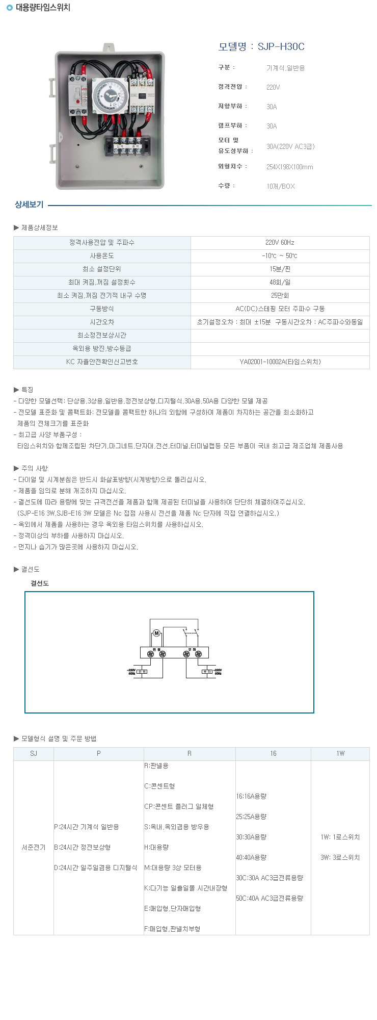 [¼­ÁØ]±â°è½Ä ÀÏ¹Ý¿ë ´ë¿ë·® ŸÀÓ½ºÀ§Ä¡(SJP-H30C,30A,¿Á¿Ü¹æ¿ìÇü,Â÷´Ü±â/¸¶±×³×Æ®½ºÀ§Ä¡ Á¶ÇÕ)(High Power Mechanical Time Switch)