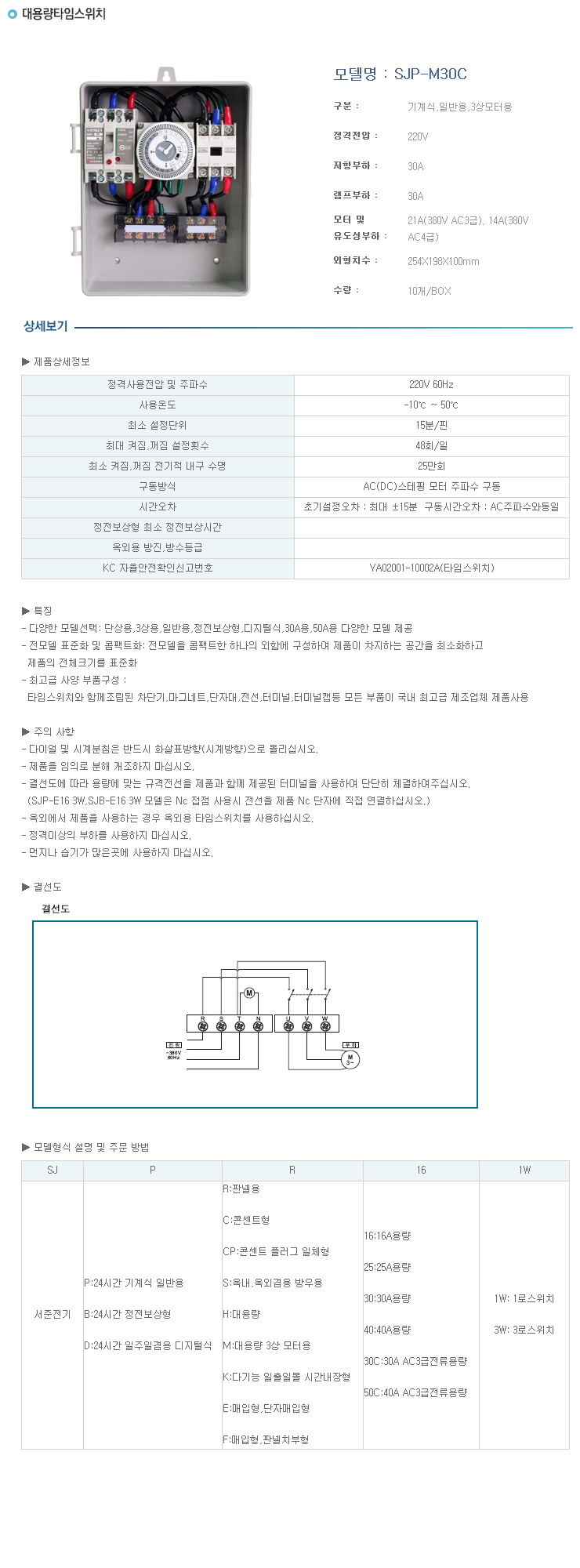 [¼­ÁØ]±â°è½Ä ÀϹݿë 3»ó ´ë¿ë·® ŸÀÓ½ºÀ§Ä¡(SJP-M30C,30A,¿Á¿Ü¹æ¿ìÇü,Â÷´Ü±â/¸¶±×³×Æ®½ºÀ§Ä¡ Á¶ÇÕ)(High Power Mechanical Time Switch)