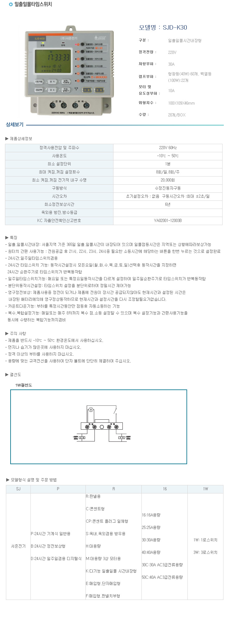 [¼­ÁØ]ÀÏÃâÀϸô½Ã°£³»ÀåÇü ŸÀÓ½ºÀ§Ä¡(SJD-K30,2.2KwÀüµîºÎÇÏ)(Digital Time Switch)