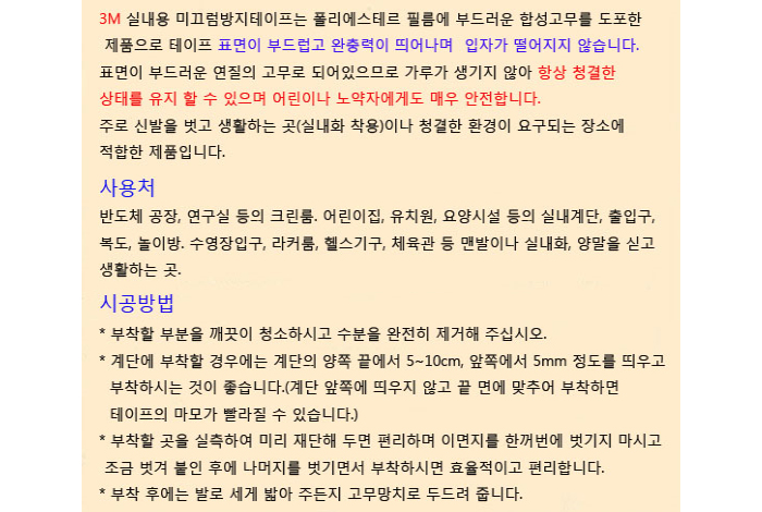 ¡Ý Ư ¡ : ½Ç³»¿ë¹Ì²ô·³¹æÁöÅ×ÀÌÇÁ´Â Æú¸®¿¡½ºÅ׸£Çʸ§TAPE¿¡ °í¹«¼ººÐÀ» µµÆ÷ÇÑ Á¦Ç°À¸·Î ÀÔÀÚ°¡ ¶³¾îÁöÁö ¾Ê°í ºÎµå·¯¿î Ư¡ÀÌ ÀÖ´Â Á¦Ç°À¸·Î¼, ½Å¹ßÀ» ¹þ°í ´Ù´Ï´Â ½Ç³», ½Ç³»°è´Ü, ¹Ì²ô·¯¿î ¹æ¹Ù´Ú, Çコ±â±¸µî¿¡ ÀûÇÕÇϸç ÀÔÀÚ°¡ ¶³¾îÁöÁö ¾Ê¾Æ Ŭ¸°·ë¿¡µµ ÀûÇÕÇÕ´Ï´Ù.