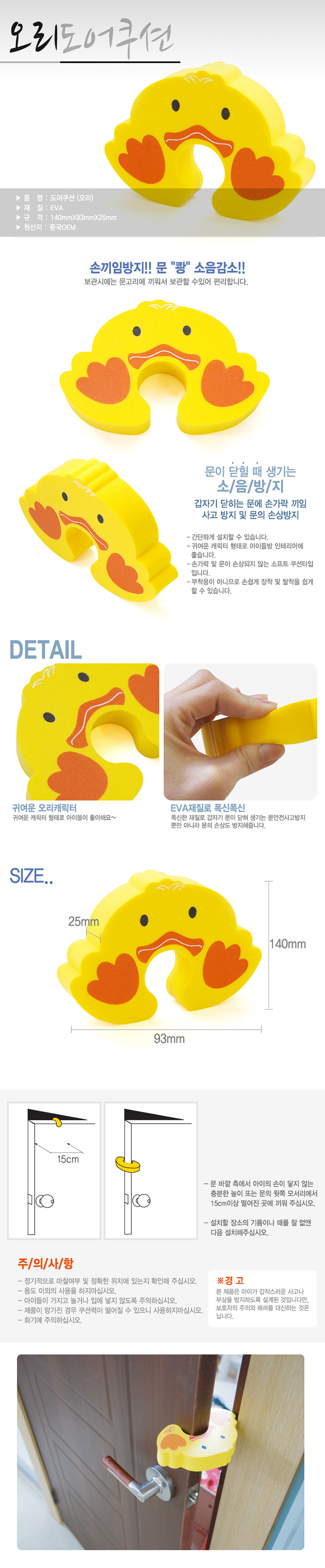 [LP]¿À¸® µµ¾îÄí¼Ç(93x140x25mm,µµ¾î½ºÅäÆÛ/¹®´ÝÈû¹æÁö/¼Õ³¢ÀÓ¹æÁö)(Child safety door stopper/Door Cushion)