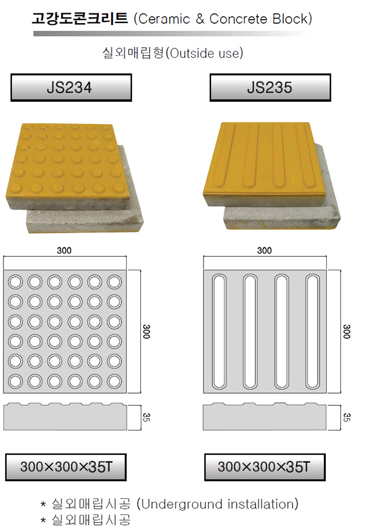 [HJ]°í°­µµÄÜÅ©¸®Æ® Á¡ÀÚºí·°(¼¼¶ó¹ÍȥȭÀç+ÄÜÅ©¸®Æ®,½Ç¿Ü¸Å¸³Çü,300x300x35T)(Braille block)