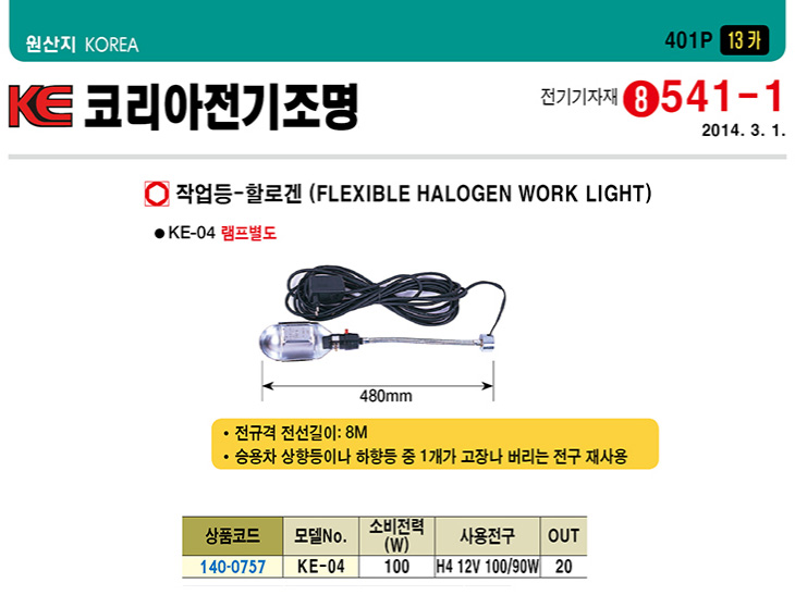 [KE]ÇÒ·Î°Õ ÀÛ¾÷µî(KE-04,ÀÚ¼®½Ä/100Watt/½Â¿ëÂ÷¿ë Çҷΰշ¥ÇÁ,H4 12V 100/90Watt Àü±¸»ç¿ë)(Flexible Halogen Working Light)