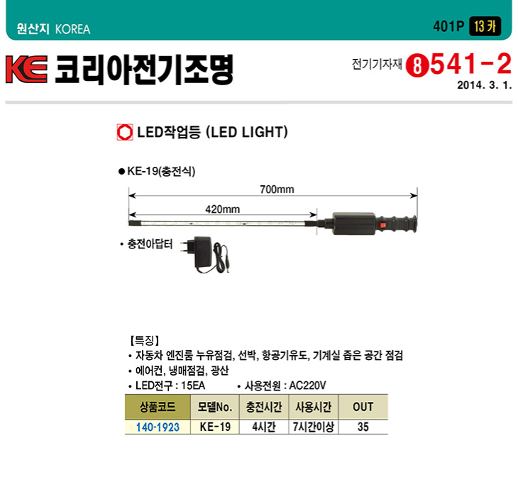 [KE]ÃæÀü½Ä LEDÀÛ¾÷µî(KE-19,4½Ã°£ÃæÀü/7½Ã°£»ç¿ë)(LED Working Light)