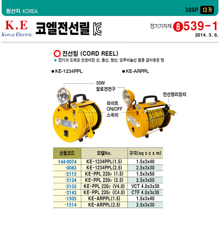 [ÄÚ¿¤]ÇÒ·Î°Õ ·¥ÇÁºÎÂø Àü¼±¸±(KE-1234PPL,1.5SQx3Cx40¹ÌÅÍ,1±¸Á¢Áö 2°³+Á¢ÁöÄܼ¾Æ®+´©ÀüÂ÷´Ü±â)(Cord Reel)