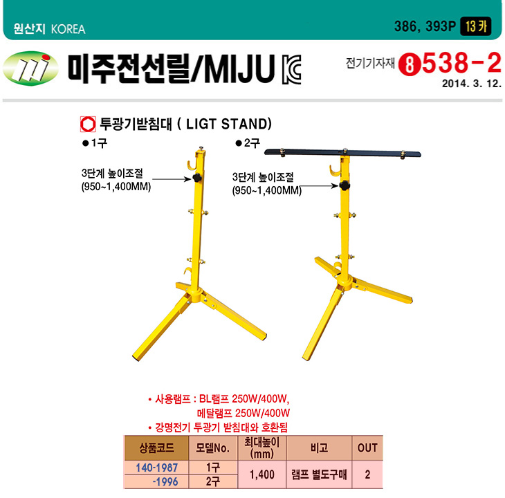 [¹ÌÁÖ]2±¸ Åõ±¤±â¹Þħ´ë(3´Ü/ÃÖ´ë³ôÀÌ1400mm)(Working Light Stand)