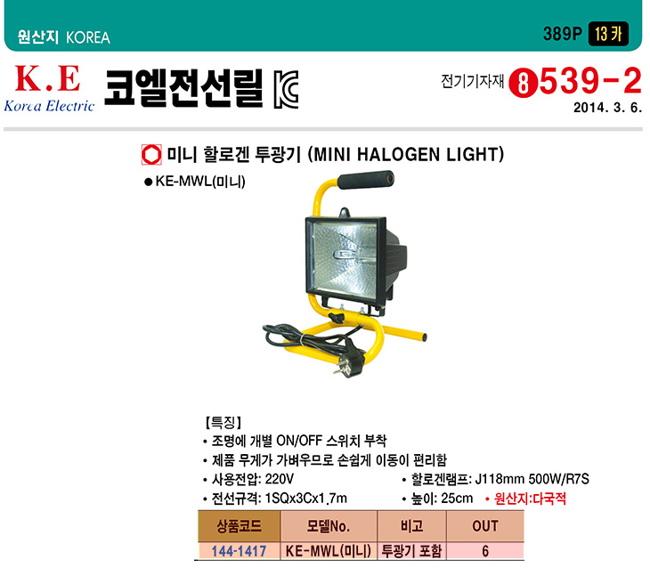 [ÄÚ¿¤Àü¼±¸±]¹Ì´Ï ÇÒ·Î°Õ Åõ±¤±â(KE-MWL,500Watt)(Mini Halogen Working Light)