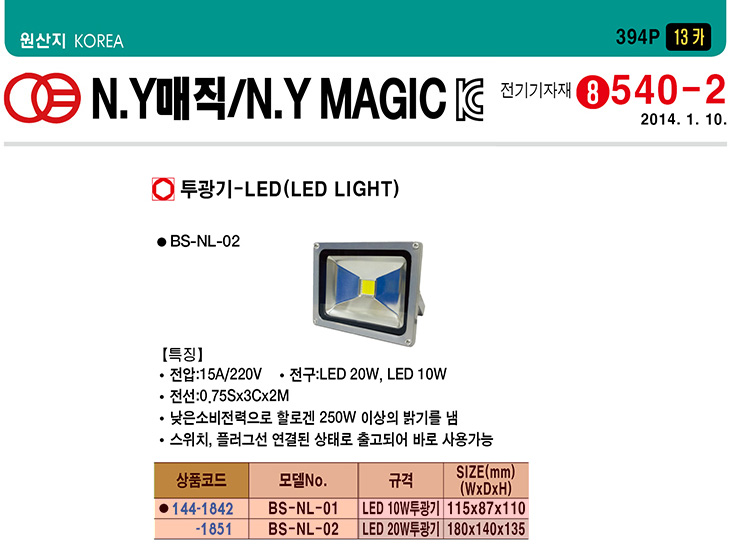 [NY¸ÅÁ÷]10Watt LED Åõ±¤±â(BS-NL-01,LED 10Watt/½ºÀ§Ä¡/Ç÷¯±× Æ÷ÇÔ)(LED Light)