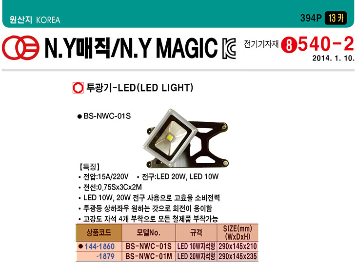 [NY¸ÅÁ÷]20Watt ÀÚ¼®Çü LED Åõ±¤±â(BS-NWC-01M,LED 20Watt/½ºÀ§Ä¡/Ç÷¯±× Æ÷ÇÔ)(LED Light)