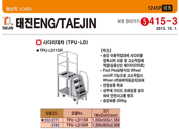 [ÅÂÁø] »ç´Ù¸®´ëÂ÷(TPU-LD115R,1050x555x1650mm)(Ladder Moving Truck)=>Á¦Ç°´ÜÁ¾!