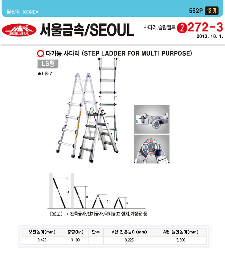 [SG] LSÇü ´Ù±â´É»ç´Ù¸®(LS-11,4x11´Ü,AÇü,ÃÖ¼Ò3.3¹ÌÅÍ/ÃÖ´ë 5.8¹ÌÅÍ)(Step Ladder for multi purpose)