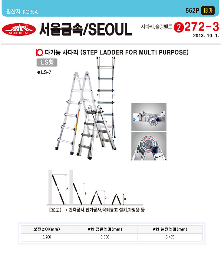 [SG] LSÇü ´Ù±â´É»ç´Ù¸®(LS-12,4x12´Ü,AÇü,ÃÖ¼Ò3.4¹ÌÅÍ/ÃÖ´ë 6.5¹ÌÅÍ)(Step Ladder for multi purpose)