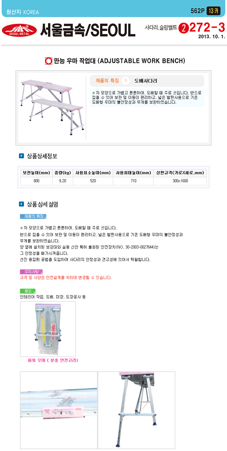 [SG]»óÆÇÁ¢ÀÌÇü ¸¸´É¿ì¸¶ÀÛ¾÷´ë/µµ¹è»ç´Ù¸®(Æø300x±æÀÌ1600x³ôÀÌ520~710mm)(Adjustable Work Bench)