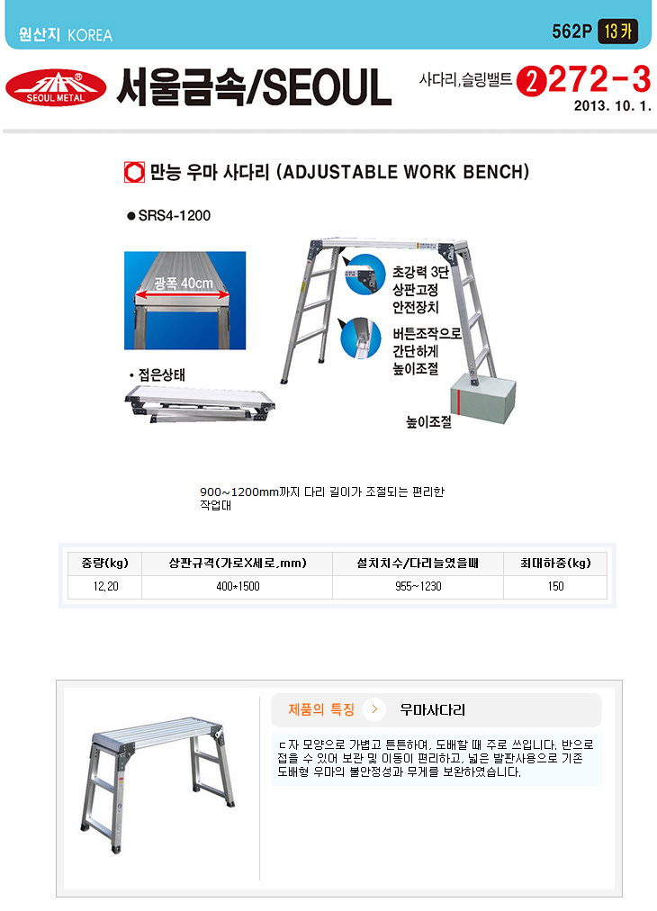 [SG]¸¸´É ¿ì¸¶»ç´Ù¸®(SRS 400x1500, ³ôÀÌ 900~1200mm)(Adjustable Work Bench)