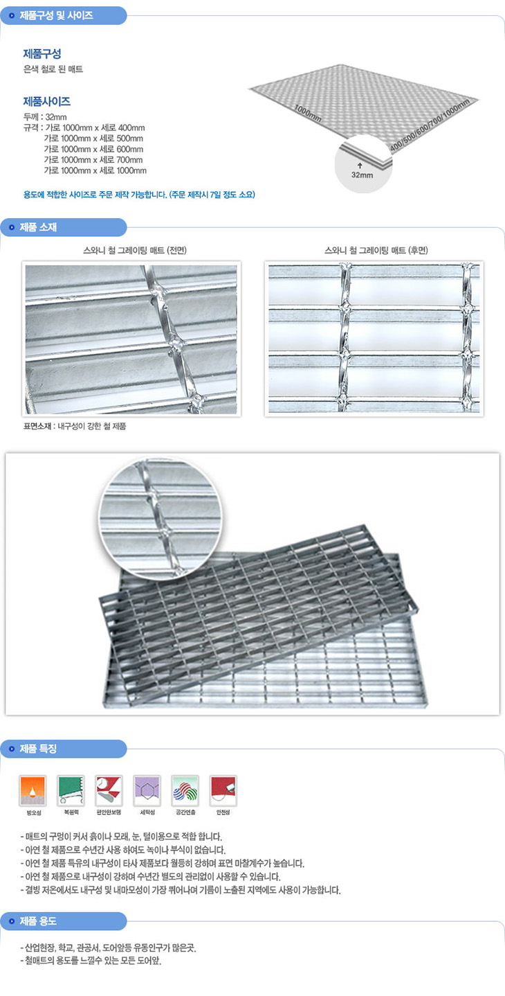 [SW] ö ±×·¹ÀÌÆÃ ¸ÅÆ®(TSW5008,µÎ²²32mm, ¾Æ¿¬µµ±Ý öÀç ¸ÅÆ®)(Trench cover Grating)