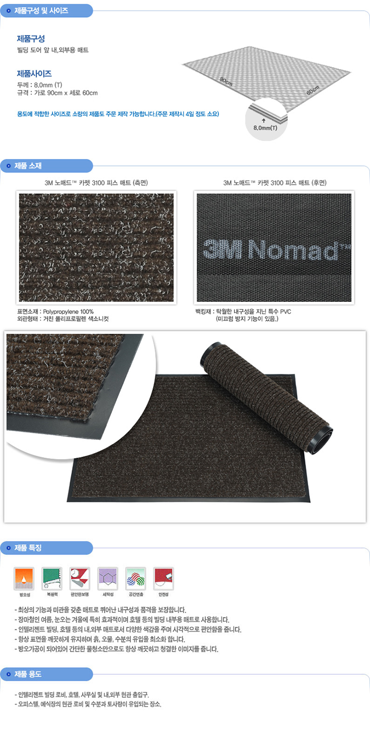 [SW]3M ³ë¸Åµå¢â Ä«Æê3100 Çǽº ¸ÅÆ®(3MSW3019,µÎ²²8mm/900x600mm)(Çö°ü/µµ¾î ³»¿ÜºÎ ¸ÅÆ®)(3M¢â Nomad¢â Scraper 3100 Carpet mat)