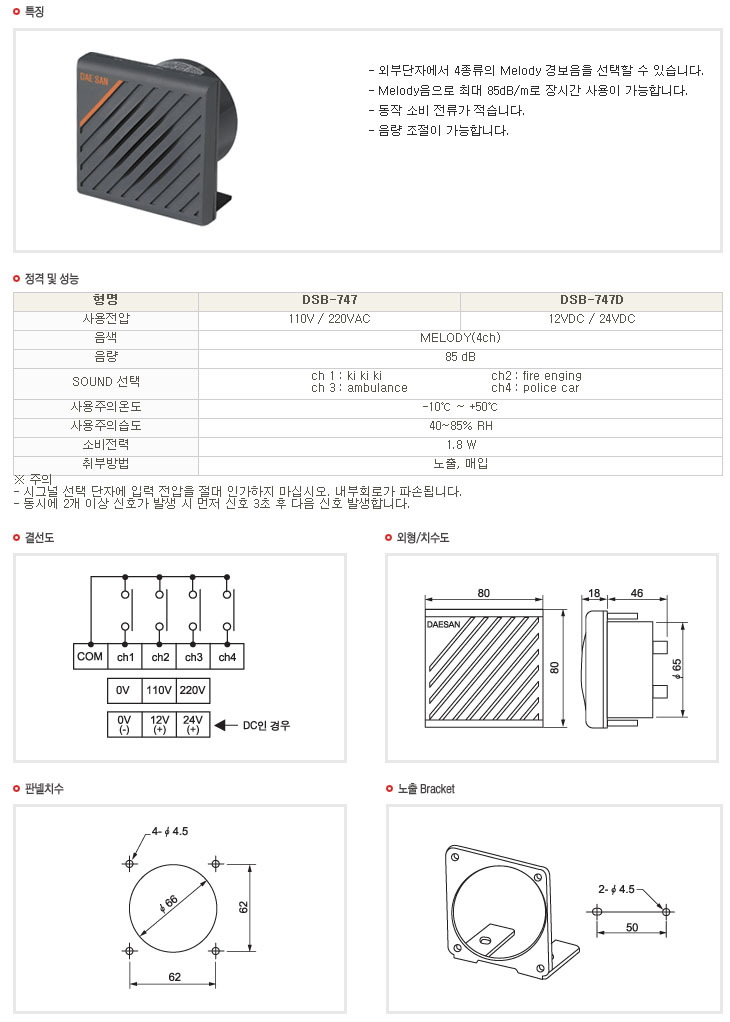 [´ë»êÀü±â]ÀüÀÚ½Ä ¸á·Îµð ºÎÀú(DSB-747D,DC12V-DC24V,¸á·Îµð4Á¾,85dB)