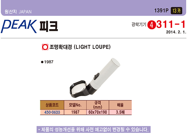 [PEAK/ÇÇÅ©]Á¶¸íÈ®´ë°æ(PEAK-1987,¨ª60x70x190mm,3.5¹èÁÜ)(LIGHT LOUPE)